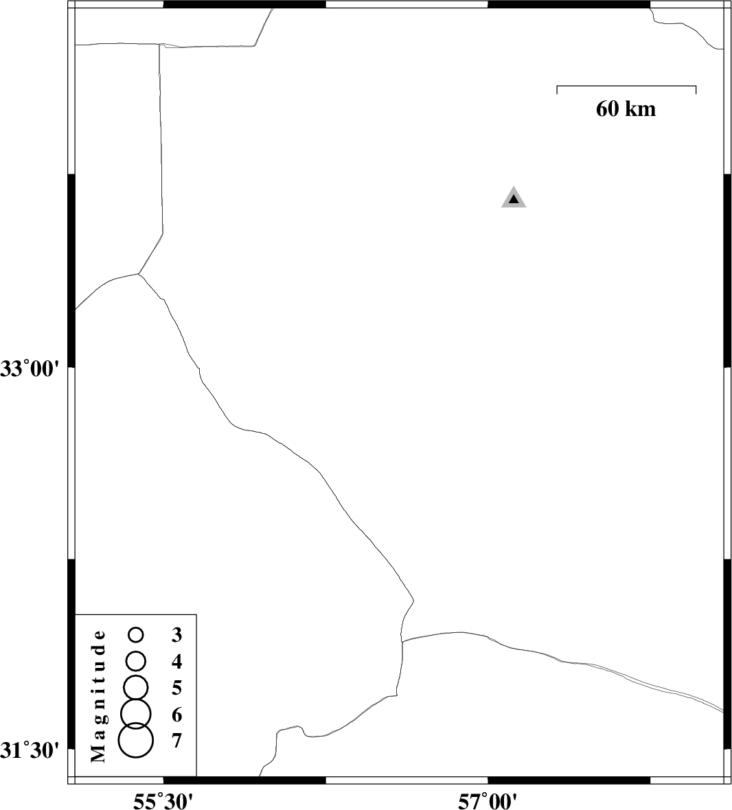 2009/01/24 | 05:50:33.4 | 09:20:33.4 | 32.89 | 56.59 | 14 | ML3.6 | 84 km South-West of Tabas, Yazd Province |