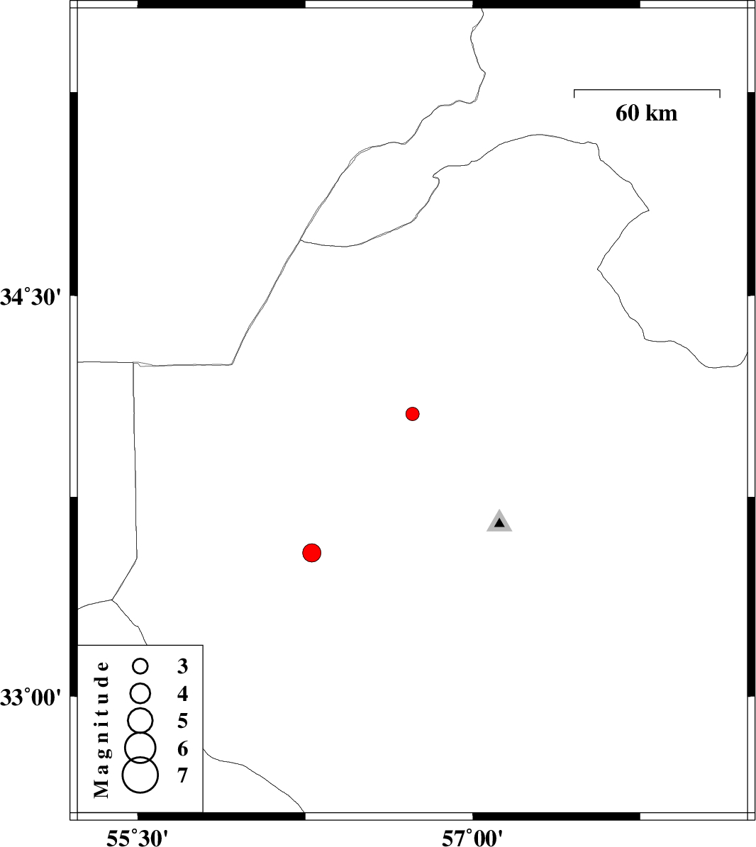 2009/02/08 | 22:11:48.1 | 01:41:48.1 | 33.54 | 56.28 | 6 | ML3.7 | 60 km West of Tabas, Yazd Province | ||