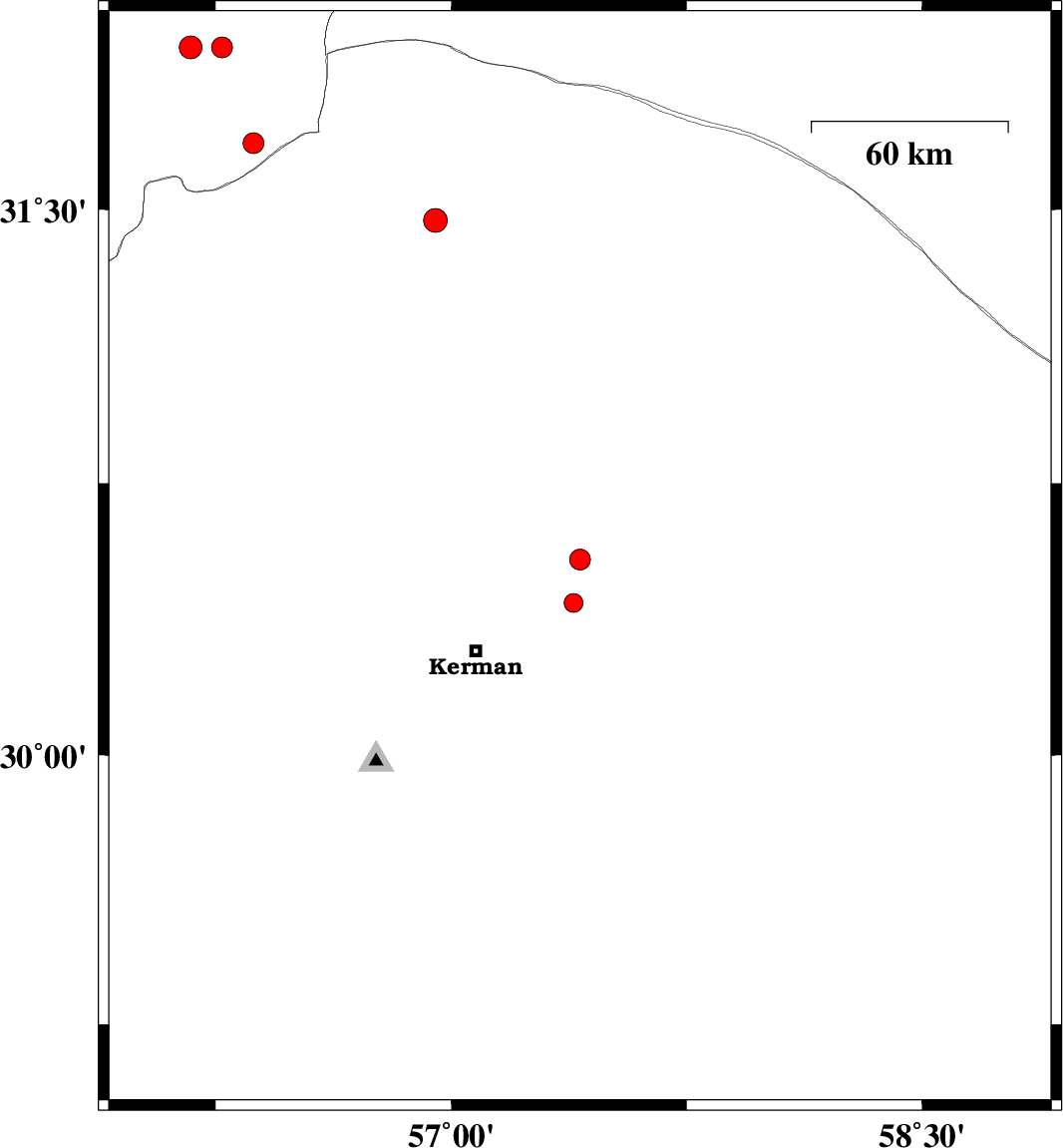 2009/02/08 | 10:32:06.0 | 14:02:06.0 | 30.54 | 57.41 | 7 | ML3 | 41 km North-East of Kerman, Kerman Province | ||