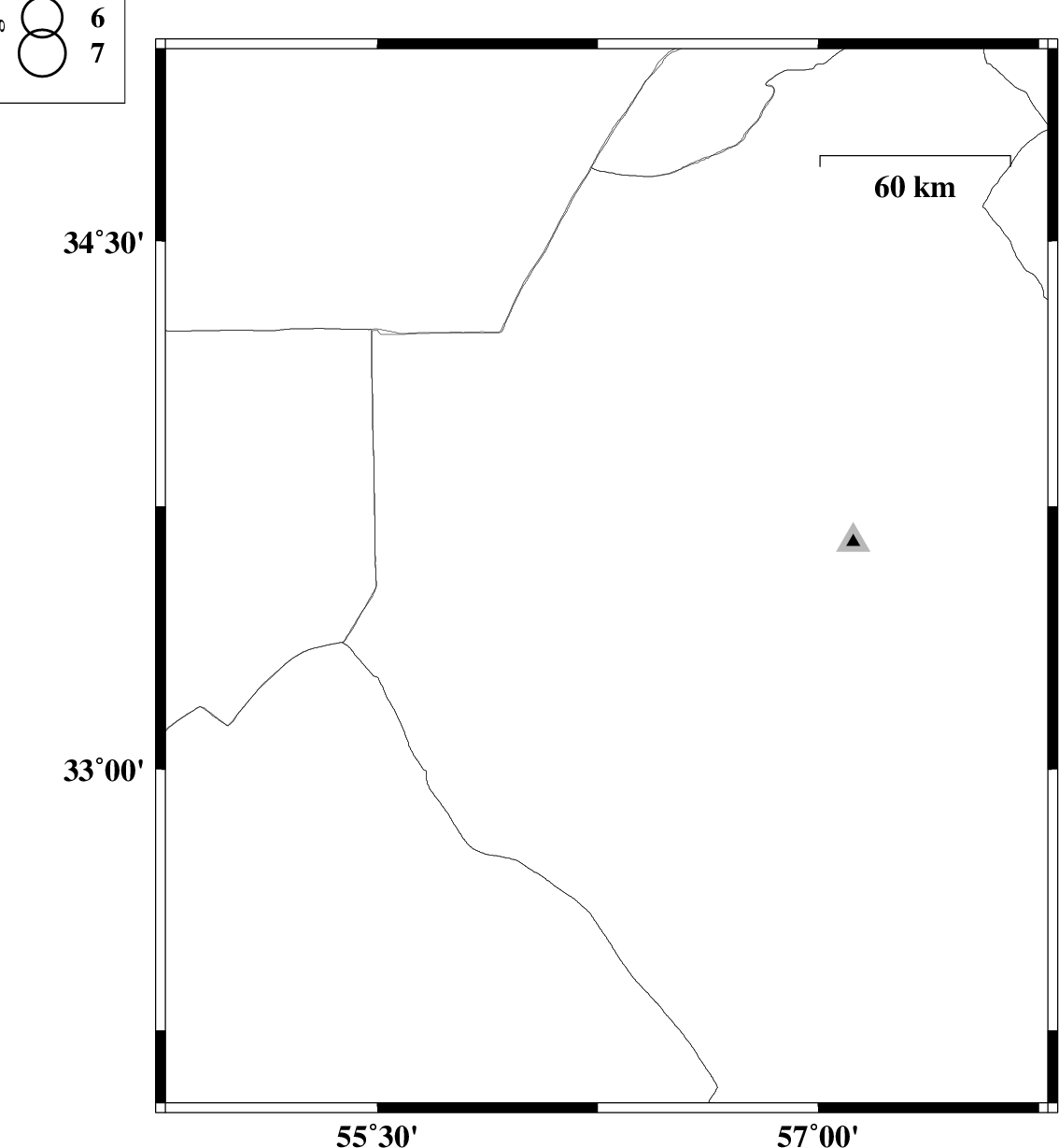 2009/02/08 | 22:11:48.1 | 01:41:48.1 | 33.54 | 56.28 | 6 | ML3.7 | 60 km West of Tabas, Yazd Province | ||