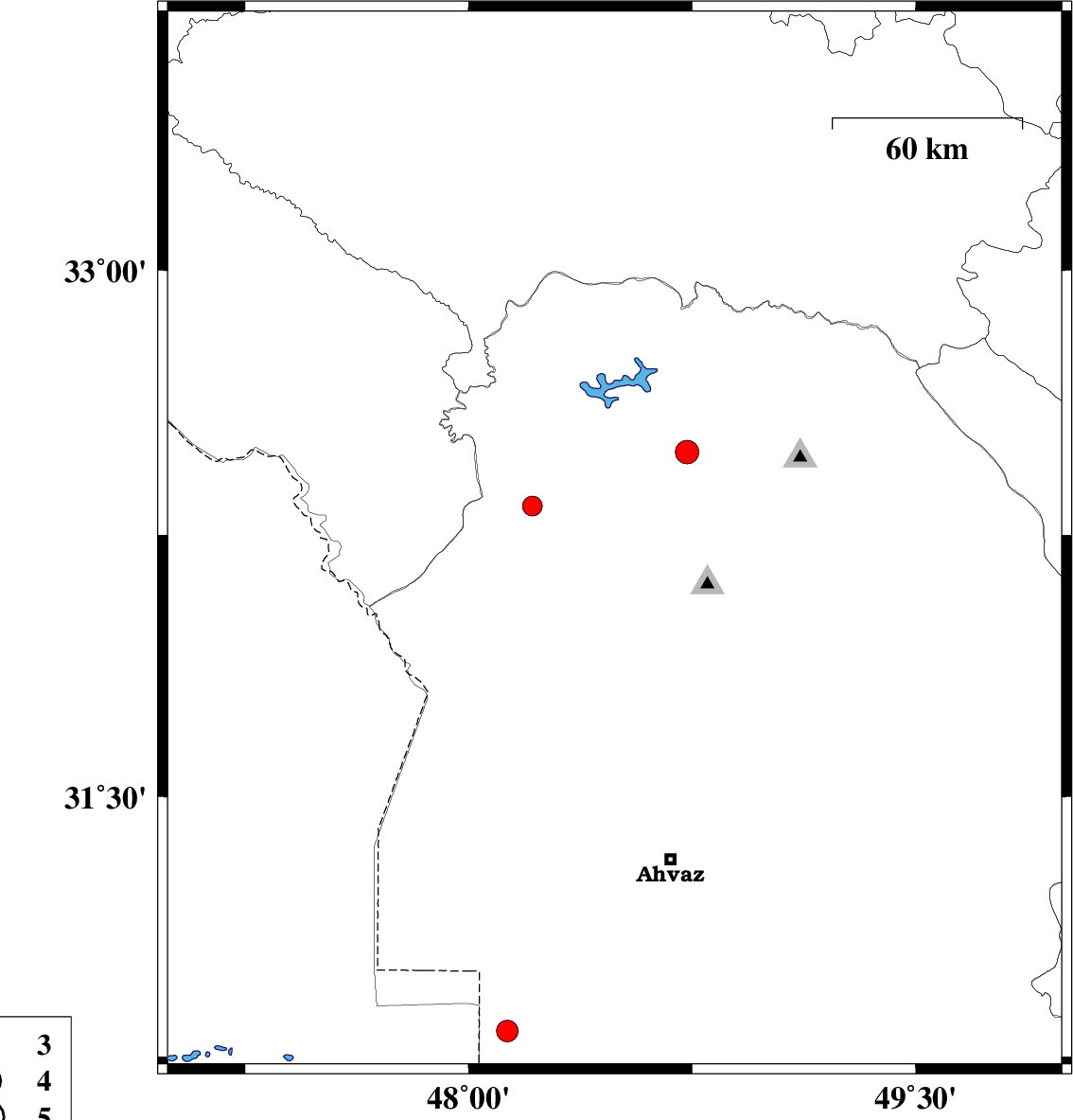 2009/02/07 | 10:31:09.3 | 14:01:09.3 | 31.16 | 48.43 | 30 | ML3.2 | 29 km South-West of Ahvaz, Khoozestan Province | ||