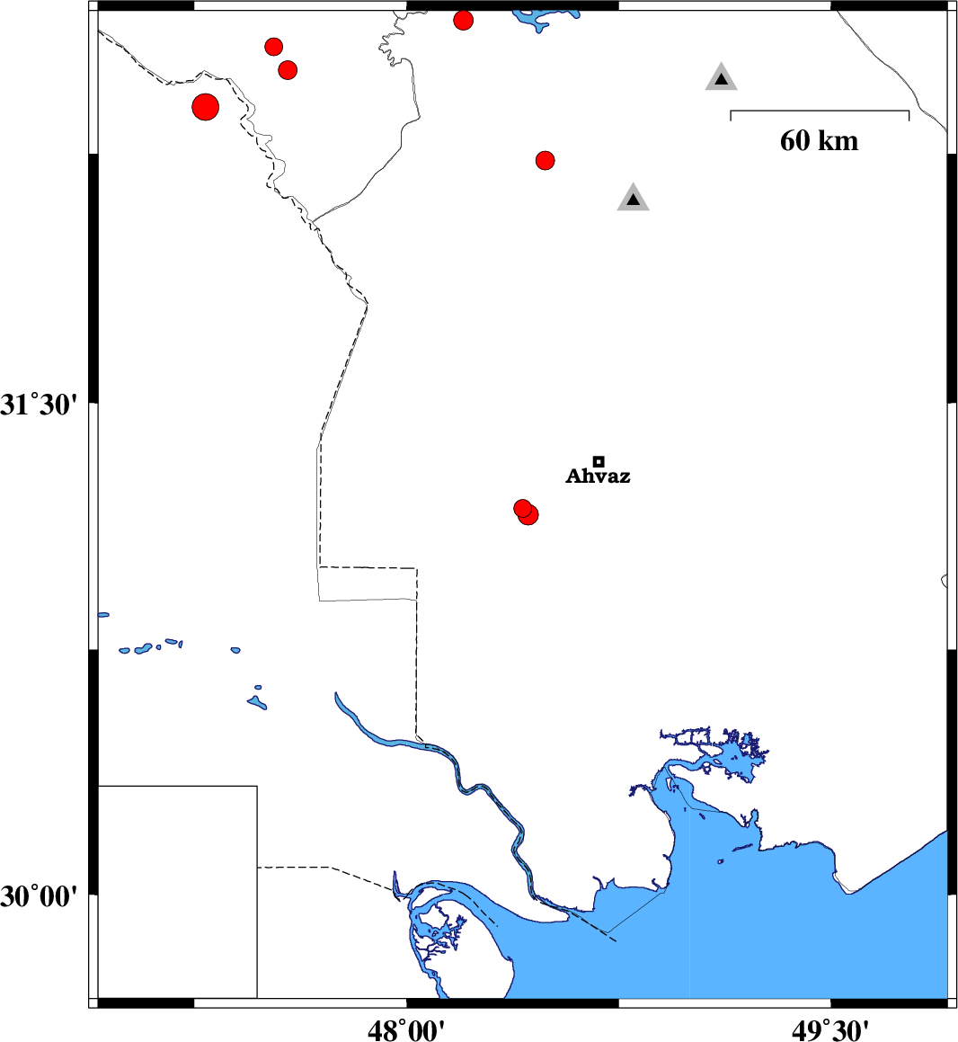 2009/02/10 | 15:30:25.2 | 19:00:25.2 | 31.18 | 48.41 | 14 | ML2.8 | 30 km South-West of Ahvaz, Khoozestan Province | ||