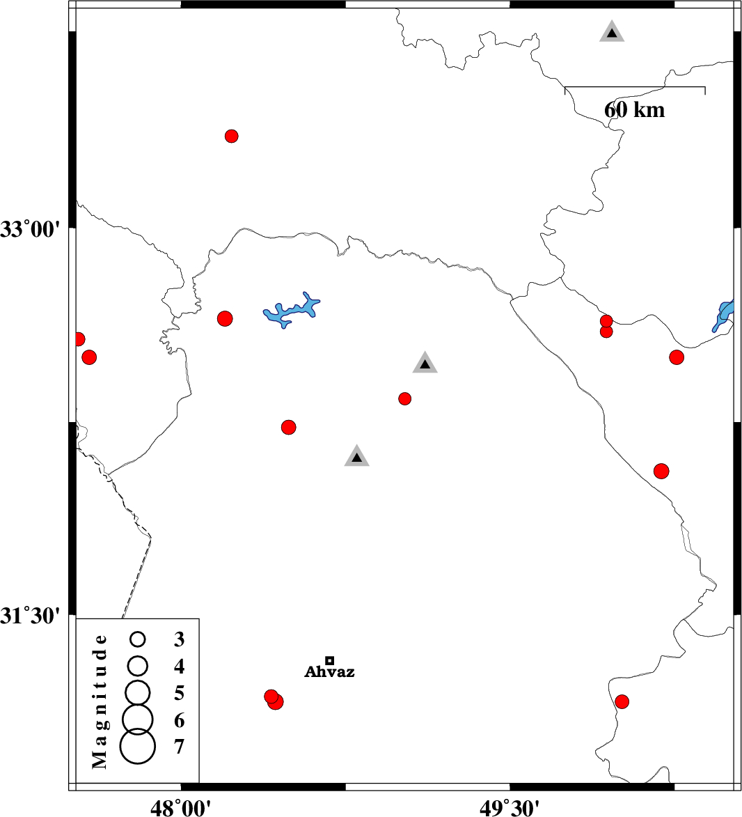 2009/02/10 | 15:30:25.2 | 19:00:25.2 | 31.18 | 48.41 | 14 | ML2.8 | 30 km South-West of Ahvaz, Khoozestan Province | ||