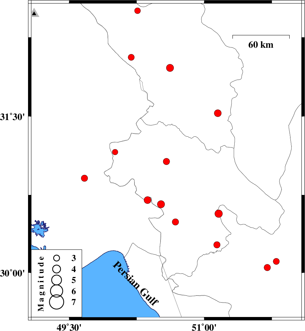 2009/02/12 | 00:54:52.4 | 04:24:52.4 | 30.91 | 49.67 | 45 | ML3.2 | 17 km North of Omidiyeh, Khoozestan Province | ||