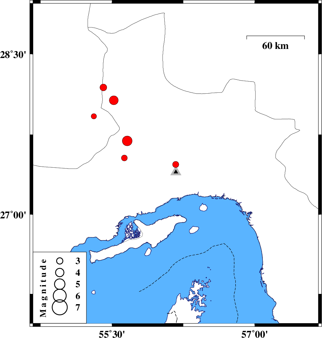 2009/02/22 | 20:54:01.3 | 00:24:01.3 | 28.07 | 55.52 | 14 | ML4.2 | 45 km South-West of Hajiabad, Hormozgan Province |