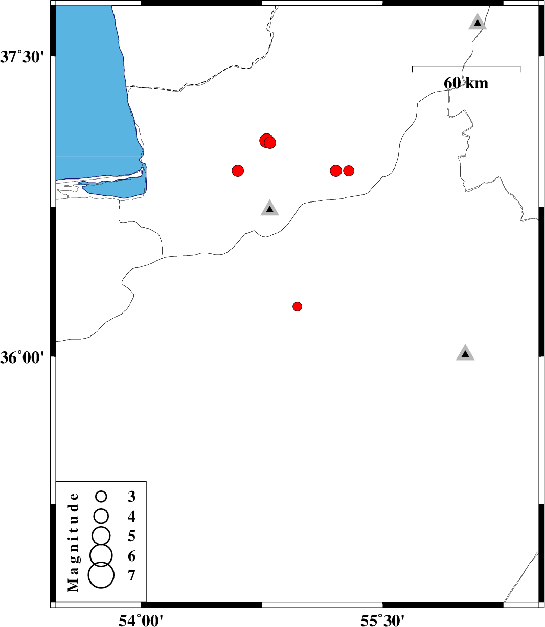 2009/02/06 | 00:43:24.1 | 04:13:24.1 | 36.93 | 55.21 | 14 | ML3.3 | 11 km Ramian, Golestan Province |