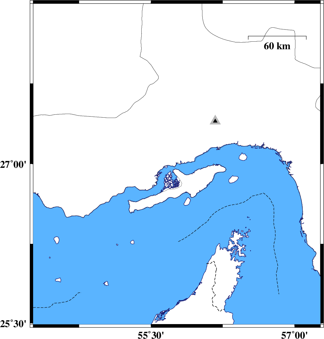 2009/02/25 | 01:13:17.0 | 04:43:17.0 | 26.99 | 55.77 | 8 | ML2.8 | Persian Gulf, 49 km West of Qeshm | ||