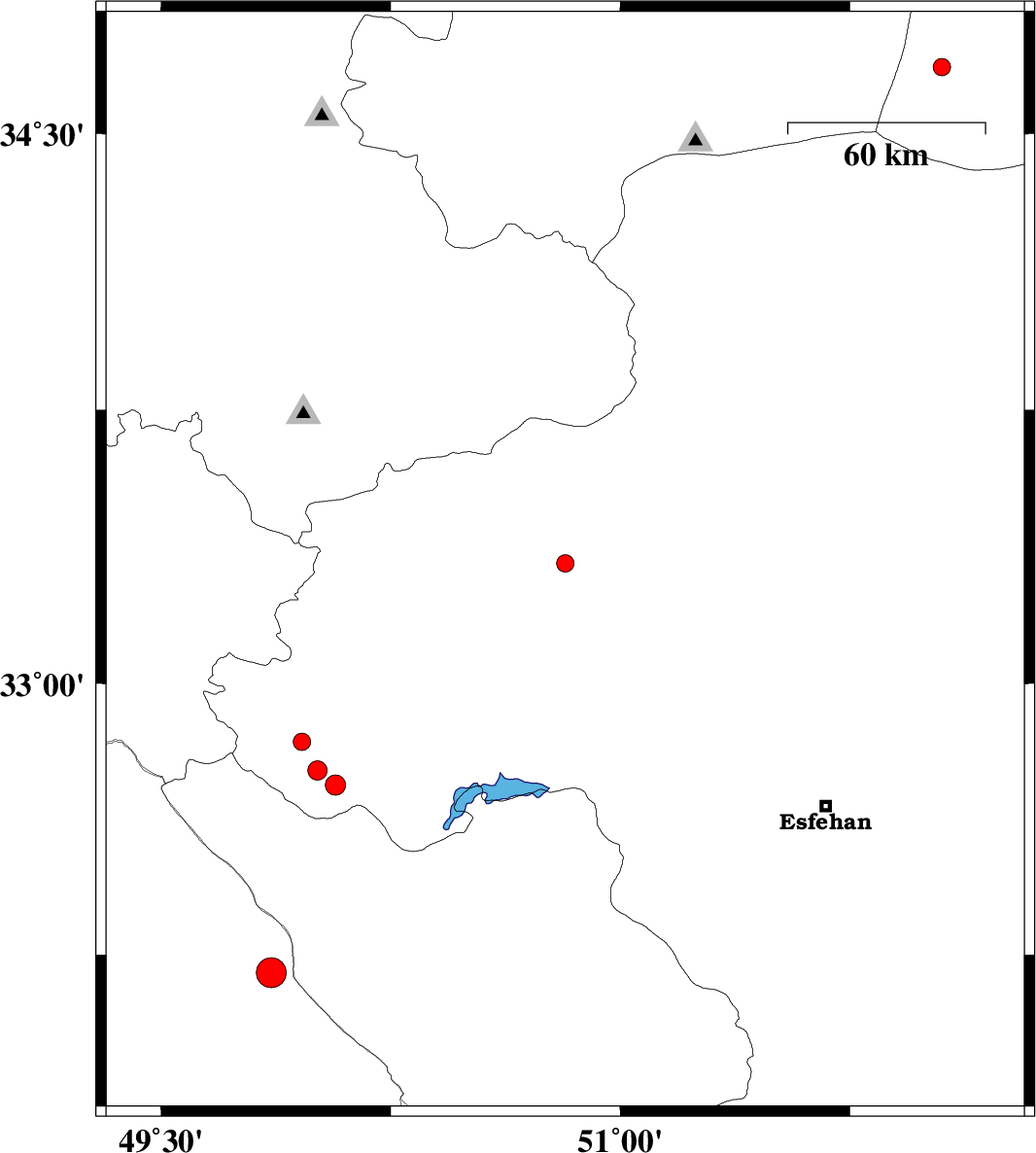 2009/03/01 | 00:06:49.4 | 03:36:49.4 | 32.72 | 50.07 | 17 | ML3 | 24 km South of Fereydunshahr, Esfahan Province | ||