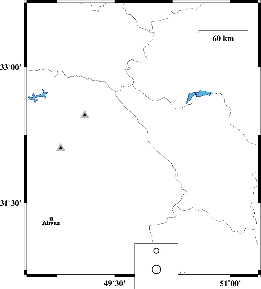 2009/02/10 | 15:30:25.2 | 19:00:25.2 | 31.18 | 48.41 | 14 | ML2.8 | 30 km South-West of Ahvaz, Khoozestan Province | ||