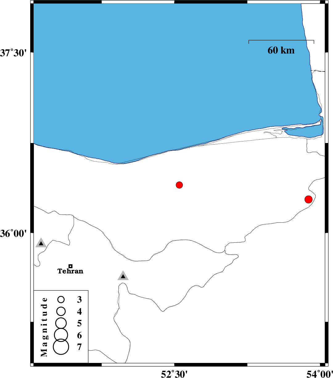 2009/03/07 | 08:46:01.6 | 12:16:01.6 | 36.4 | 52.55 | 14 | ML3.1 | 19 km East of Amol, Mazandaran Province | ||