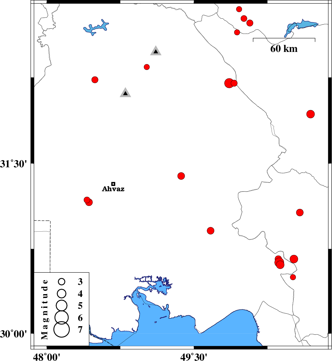 2009/02/07 | 10:31:09.3 | 14:01:09.3 | 31.16 | 48.43 | 30 | ML3.2 | 29 km South-West of Ahvaz, Khoozestan Province |