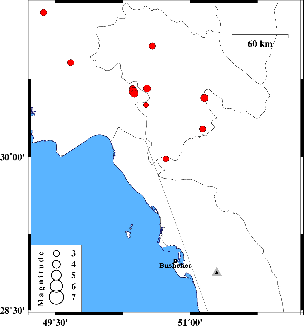 2009/02/18 | 10:46:01.6 | 14:16:01.6 | 30.61 | 50.38 | 39 | ML3.7 | 13 km East of Behbahan, Khoozestan Province | ||