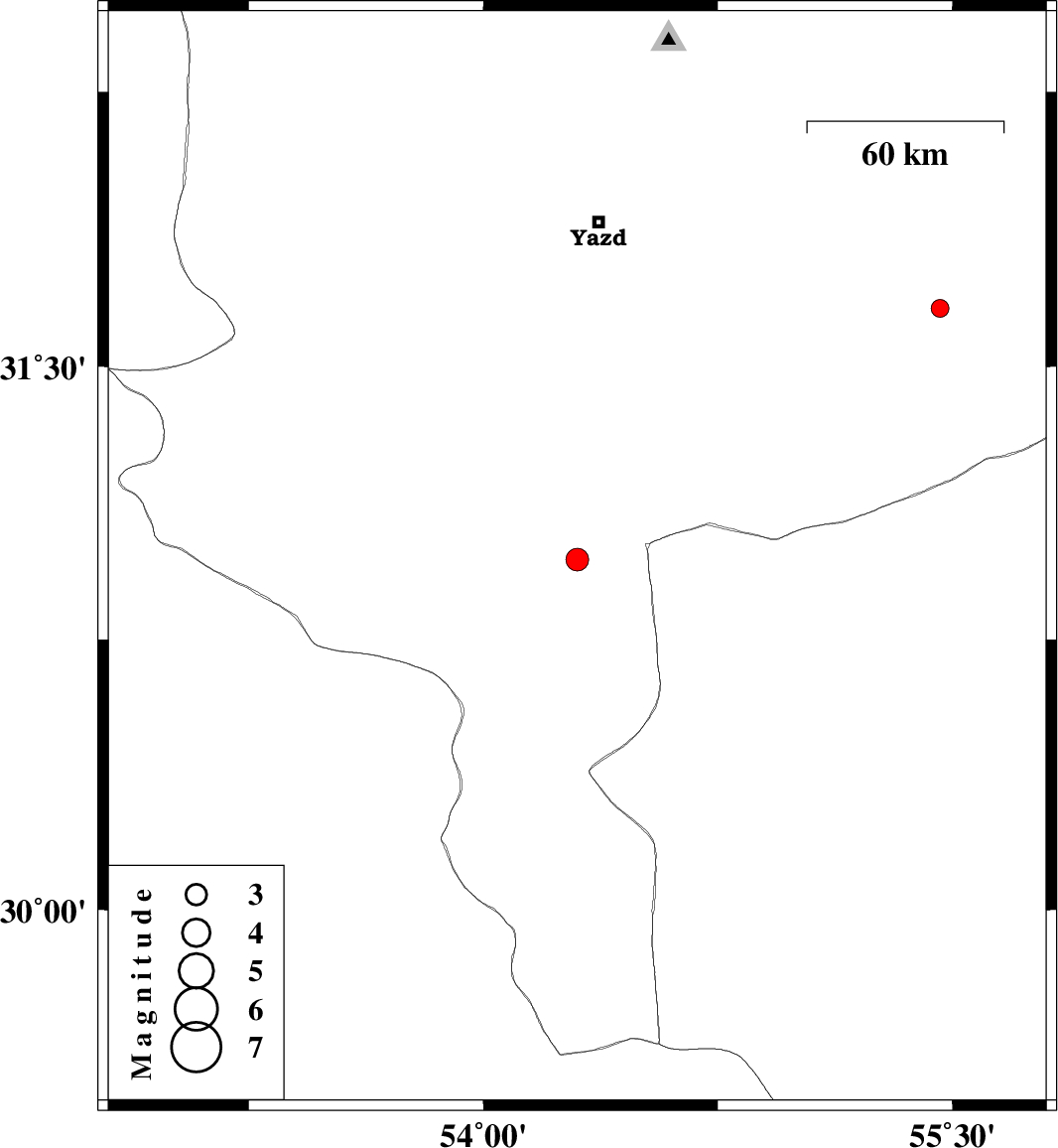 2009/03/11 01:35:06.6 05:05:06.6 30.9754.314 ML3.3 68 km South-West of Mehriz, Yazd Province