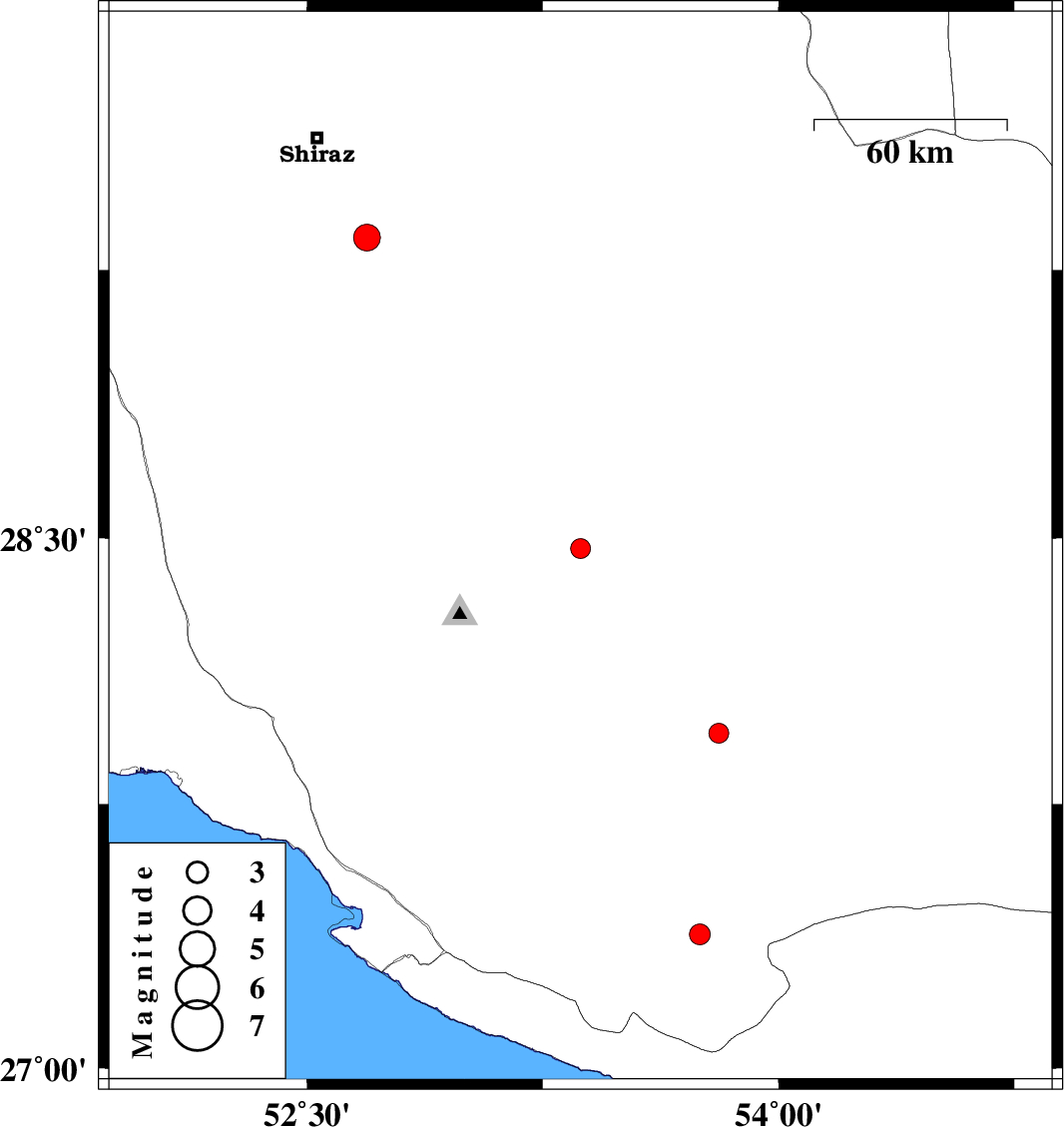 2009/02/09 | 10:34:41.5 | 14:04:41.5 | 29.34 | 52.69 | 42 | ML3.8 | 35 km South-East of Shiraz, Fars Province |