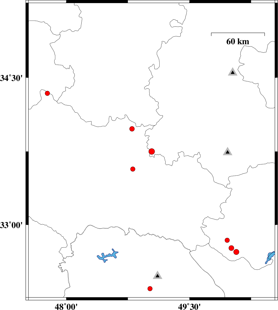 2009/03/13 | 00:20:15.7 | 03:50:15.7 | 33.75 | 49.04 | 16 | ML3.2 | 30 km South-East of Borujerd, Lorestan Province | ||