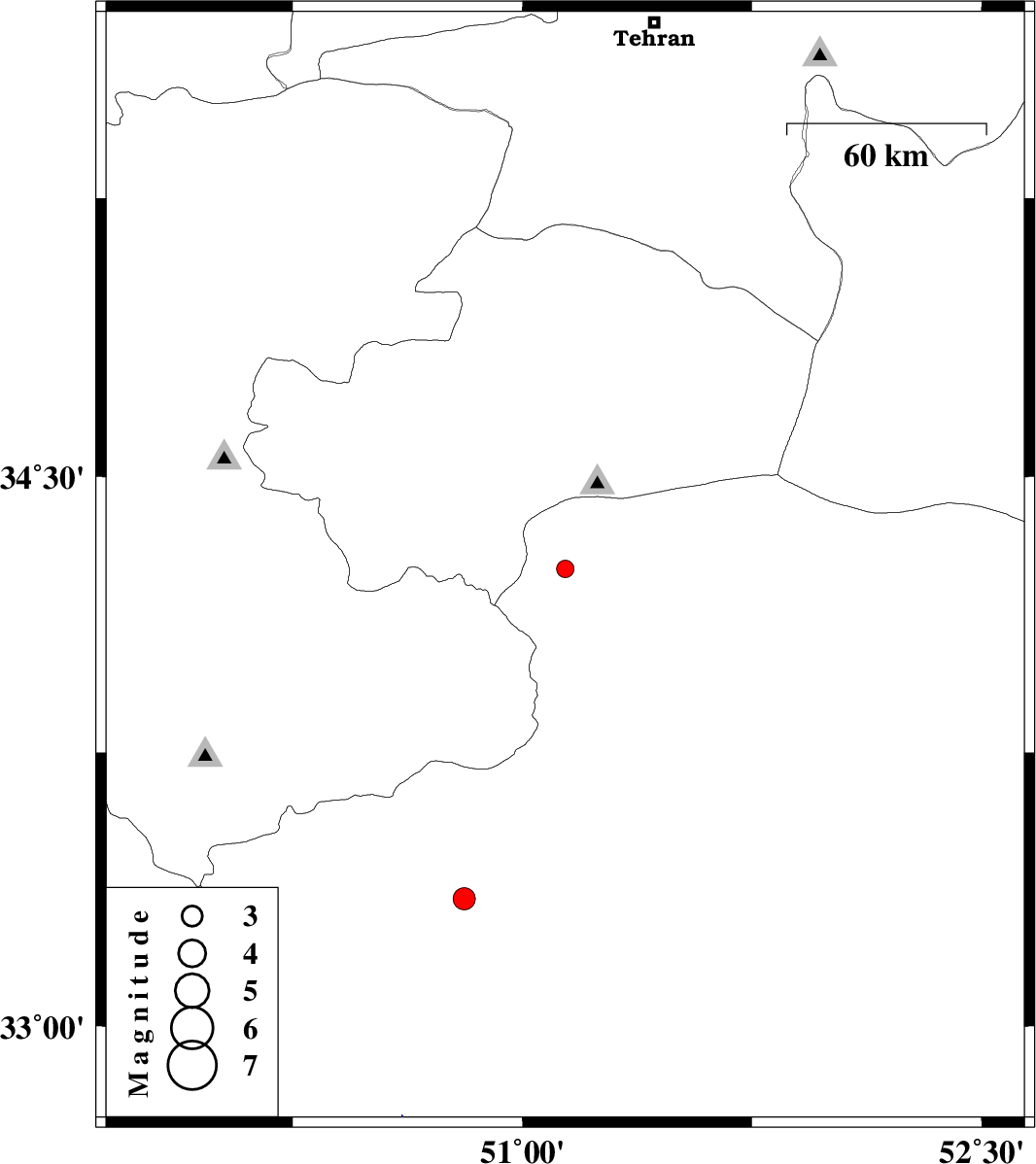 2009/03/16 | 11:30:40.6 | 15:00:40.6 | 33.35 | 50.81 | 15 | ML3.2 | 47 km North-East of Khvansar, Esfahan Province |