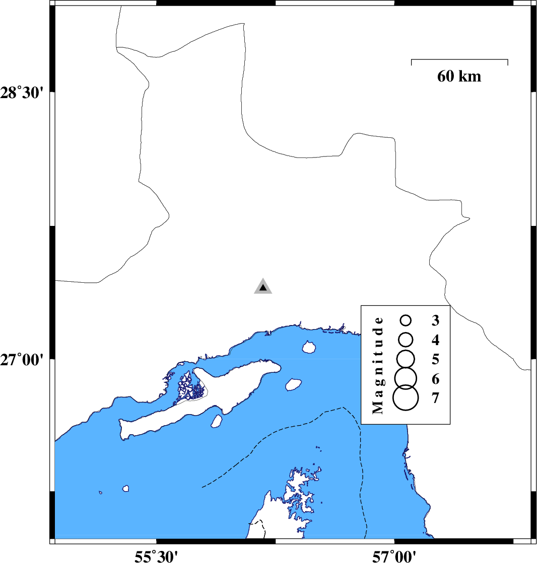 2009/03/19 | 20:54:11.3 | 00:24:11.3 | 27.48 | 56.36 | 14 | ML3.1 | 33 km North of Bandar-e abbas, Hormozgan Province |