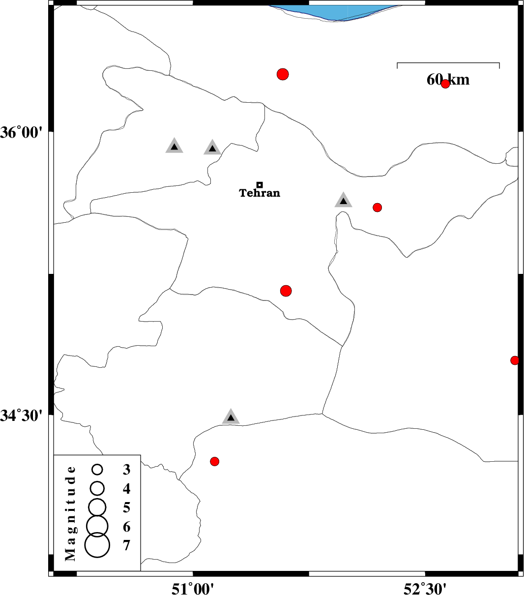2009/03/19 | 18:45:39.7 | 22:15:39.7 | 35.6 | 52.19 | 14 | ML2.6 | 16 km South-East of Damavand, Tehran Province | ||