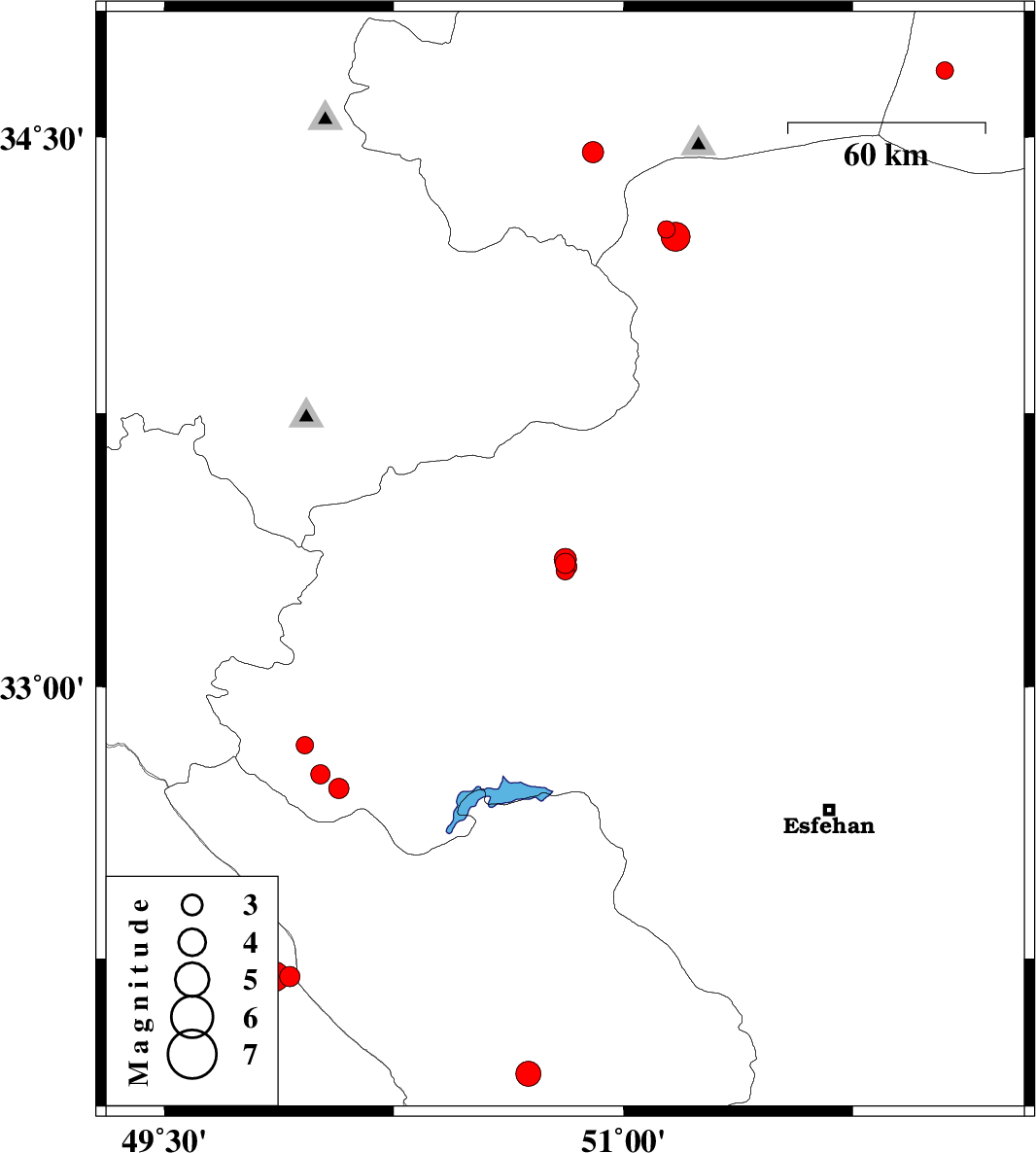 2009/03/01 | 00:06:49.4 | 03:36:49.4 | 32.72 | 50.07 | 17 | ML3 | 24 km South of Fereydunshahr, Esfahan Province | ||
