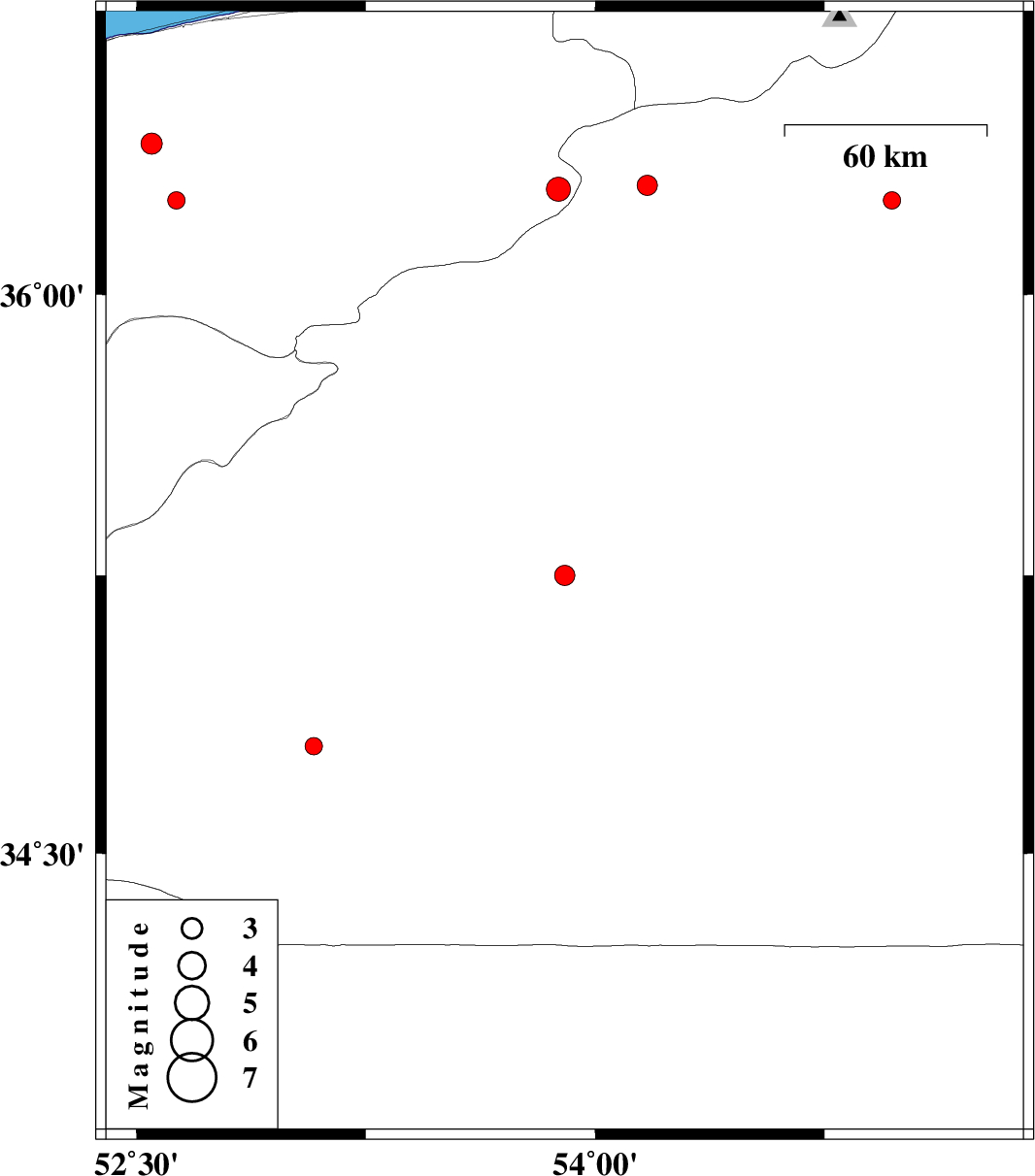 2009/03/12 | 19:13:06.1 | 22:43:06.1 | 36.29 | 54.17 | 14 | ML3 | 20 km North-West of Damghan, Semnan Province | ||