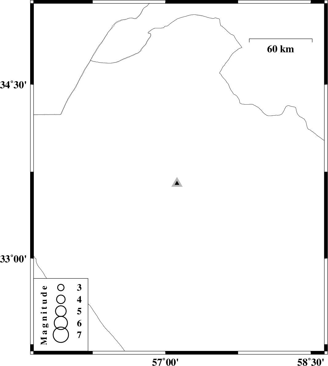 2009/03/25 14:25:07.1 18:55:07.1 33.6957.146 ML2.8 21 km East of Tabas, Yazd Province
