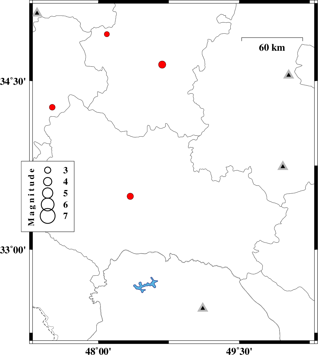 2009/03/26 | 13:44:05.2 | 18:14:05.2 | 32.5 | 48.46 | 34 | ML3.1 | 10 km East of Andimeshk, Khoozestan Province |