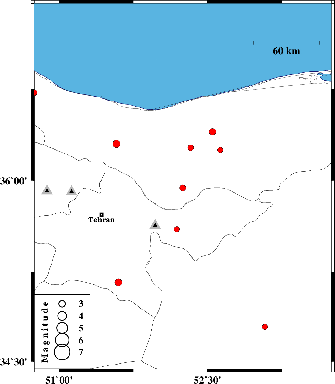 2009/03/19 | 13:48:35.3 | 17:18:35.3 | 36.3 | 51.58 | 14 | ML3.4 | 38 km South of Nowshahr, Mazandaran Province | ||
