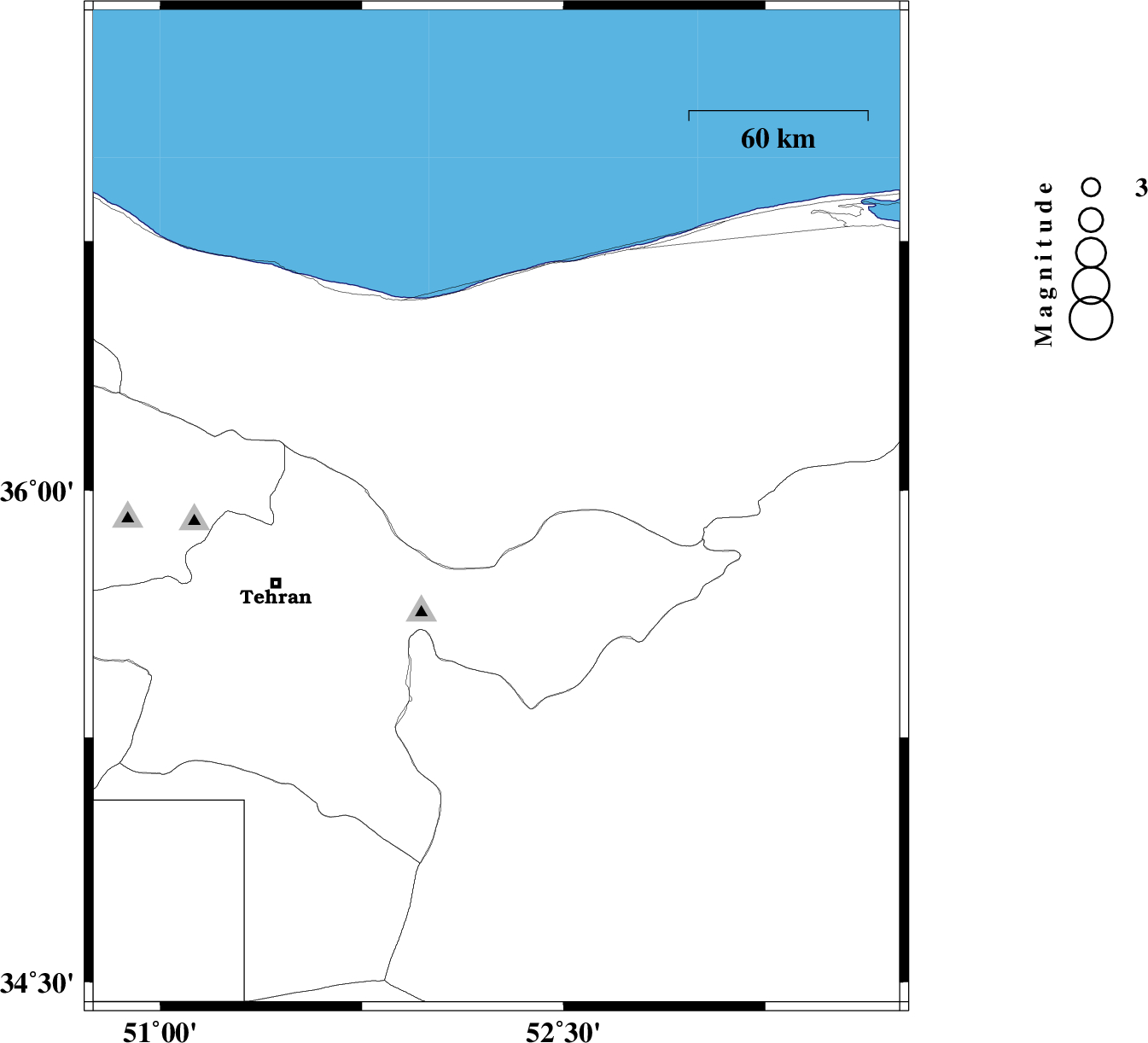 2009/04/02 | 20:18:00.1 | 00:48:00.1 | 35.94 | 52.25 | 14 | ML2.8 | 29 km North-East of Damavand, Tehran Province |