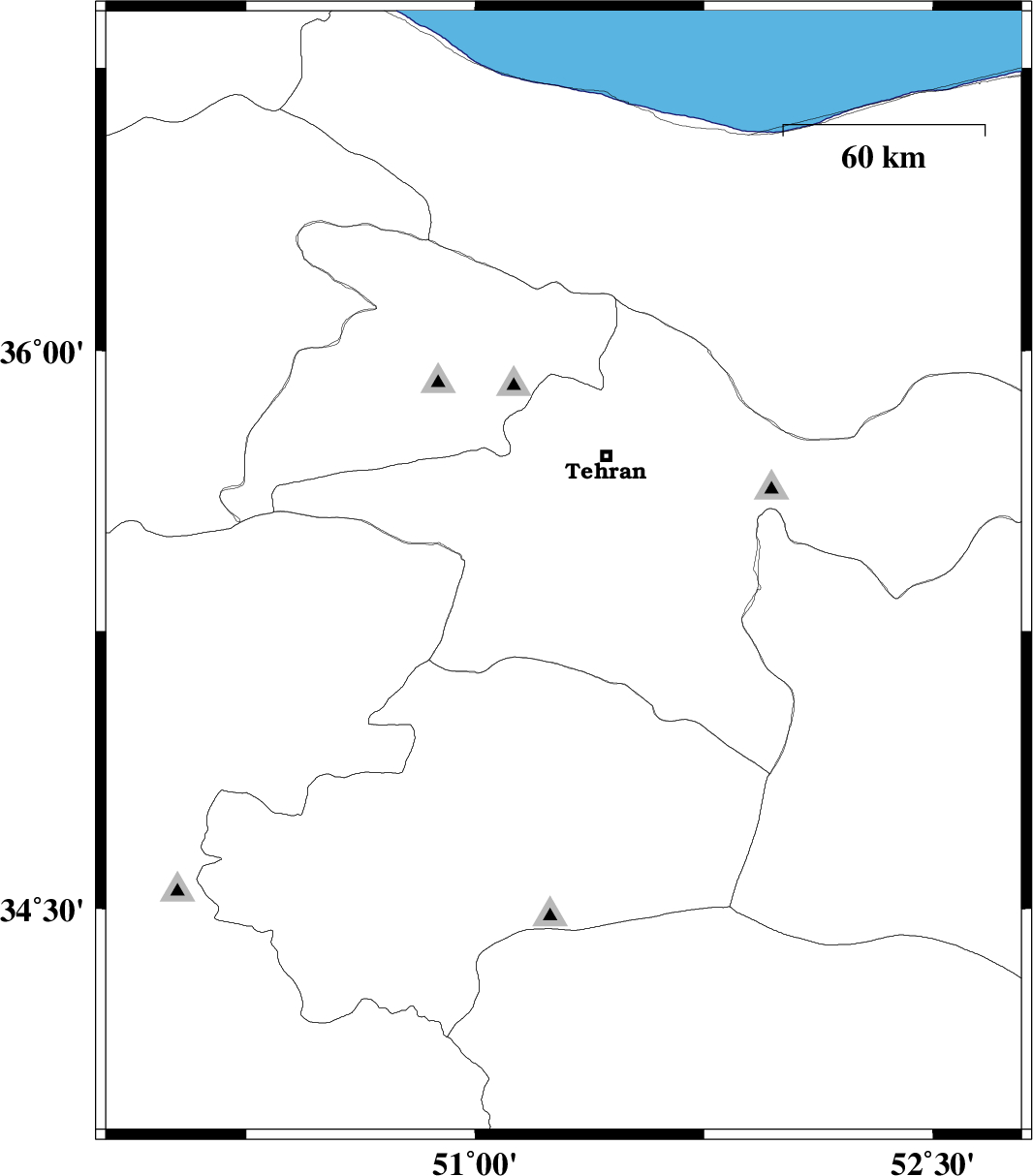 2009/03/19 | 18:45:39.7 | 22:15:39.7 | 35.6 | 52.19 | 14 | ML2.6 | 16 km South-East of Damavand, Tehran Province | ||