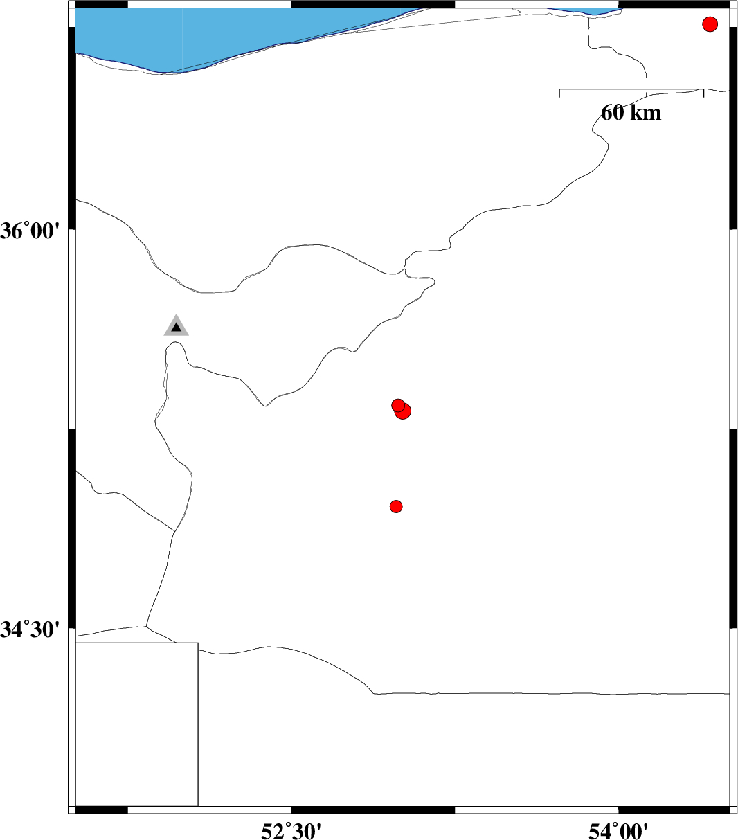 2009/04/15 | 04:42:47.9 | 09:12:47.9 | 34.96 | 52.98 | 46 | ML2.6 | 65 km South-East of Garmsar, Semnan Province |