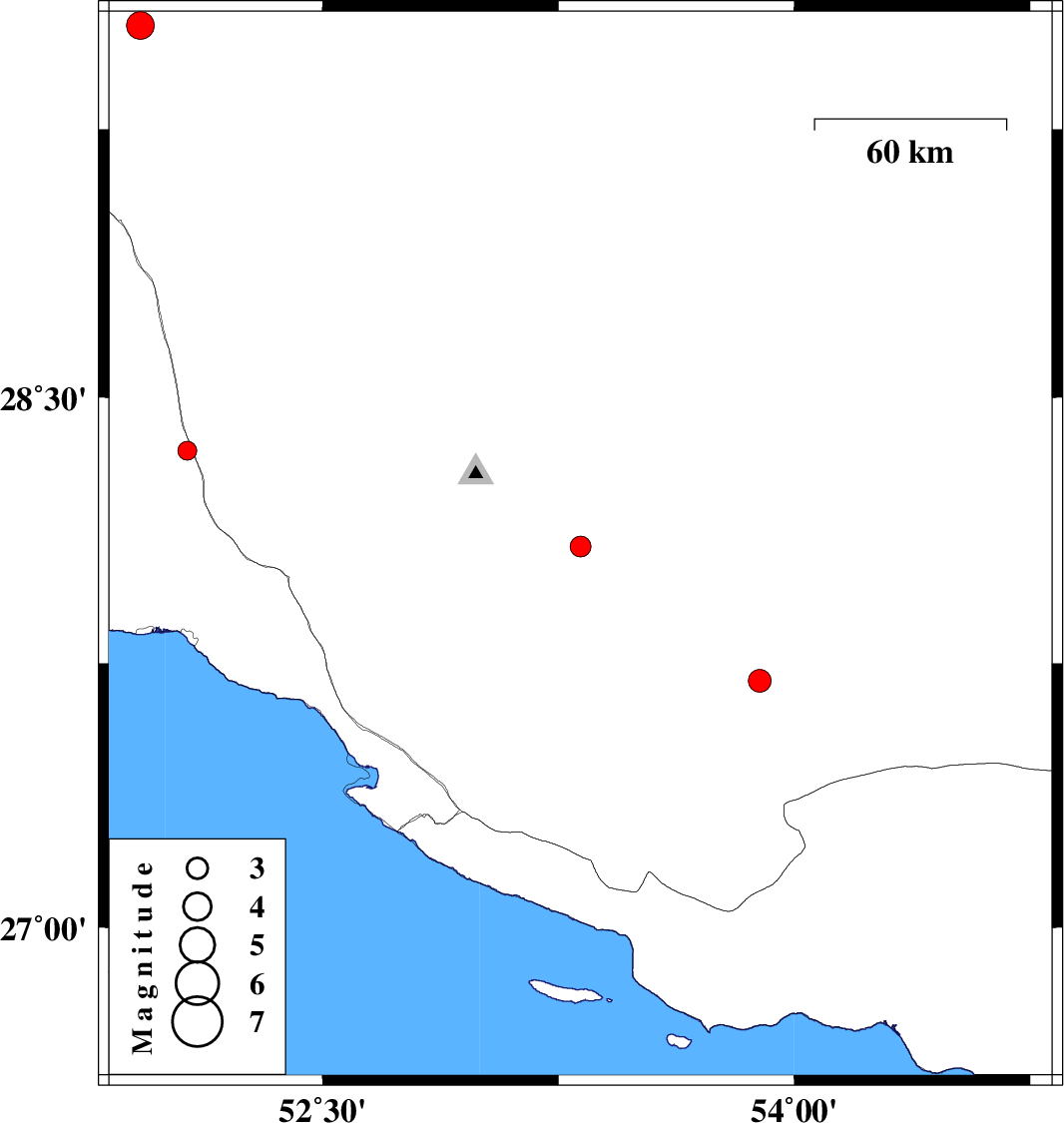2009/03/24 | 15:45:10.0 | 20:15:10.0 | 29.54 | 51.92 | 46 | ML3.9 | 26 km East of Kazerun, Fars Province |