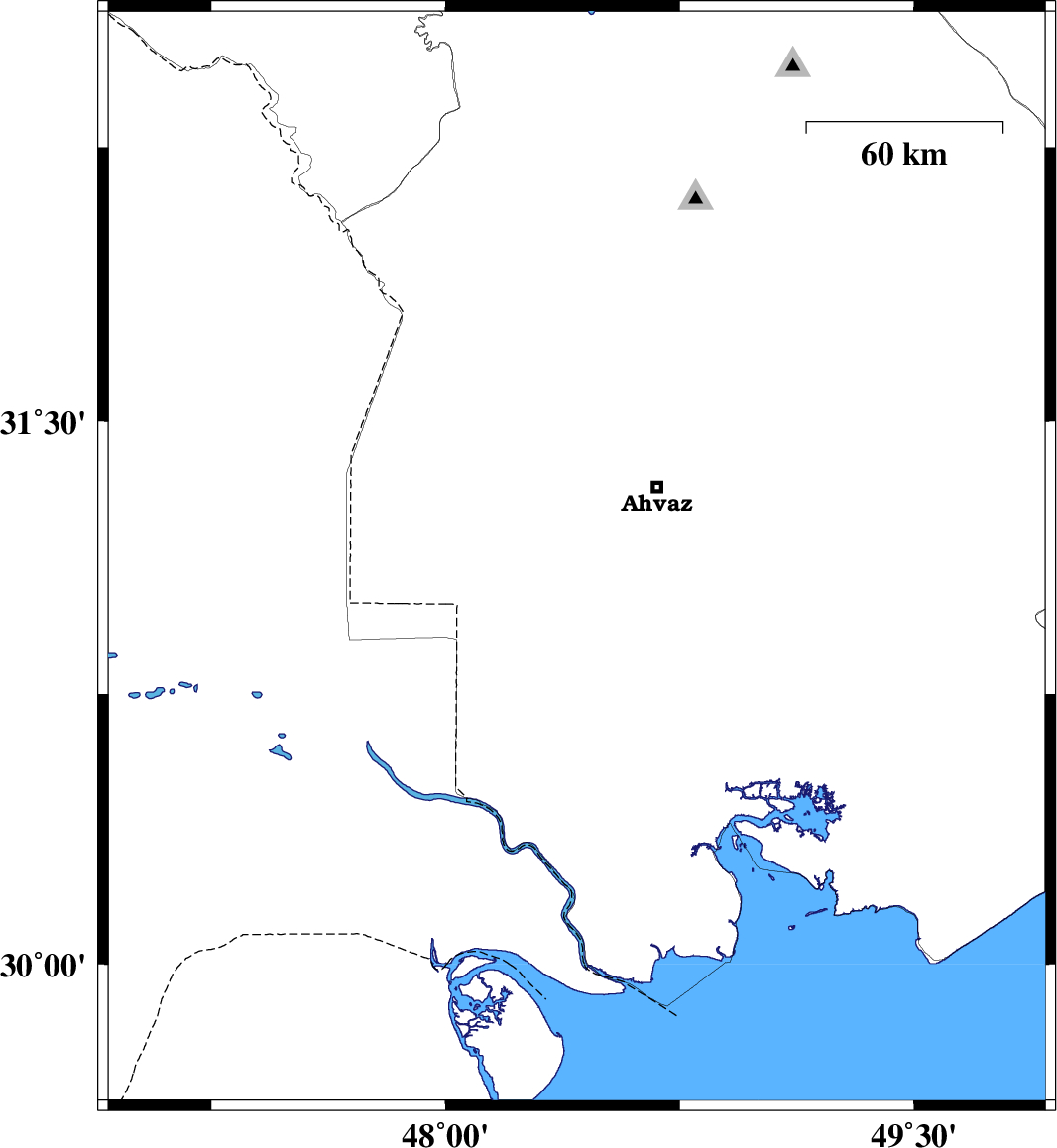 2009/04/22 | 21:46:14.5 | 02:16:14.5 | 31.12 | 48.42 | 14 | ML3.4 | 32 km South-West of Ahvaz, Khoozestan Province | ||