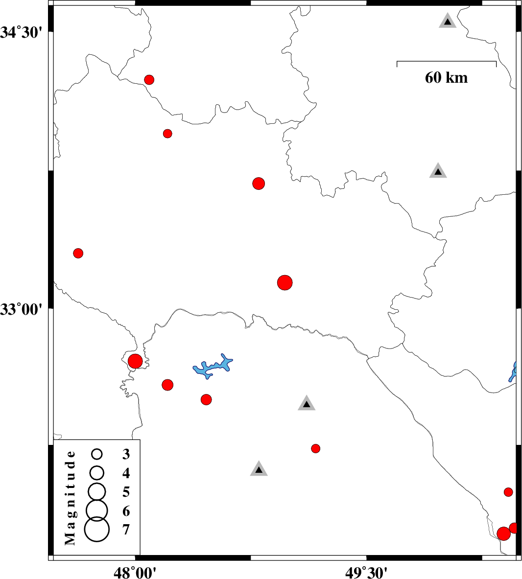 2009/04/07 | 17:32:52.5 | 22:02:52.5 | 32.71 | 48 | 14 | ML4.3 | 43 km North-West of Andimeshk, Khoozestan Province | ||
