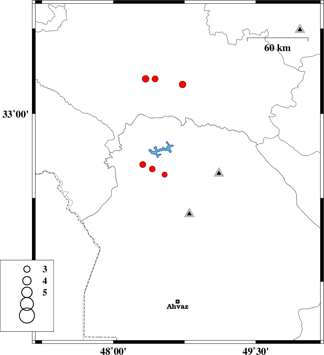 2009/05/03 | 14:37:42.9 | 19:07:42.9 | 32.38 | 48.91 | 18 | ML2.6 | 18 km West of Lali, Khoozestan Province | ||
