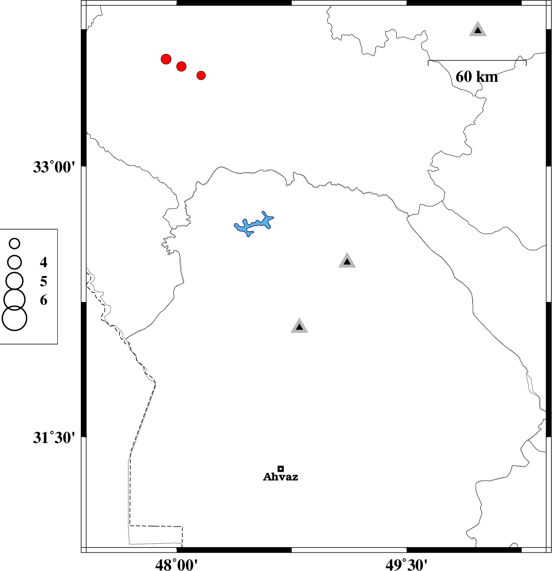 2009/05/03 14:25:11.7 18:55:11.7 32.4748.6816 ML3 28 km East of Dezful, Khoozestan Province