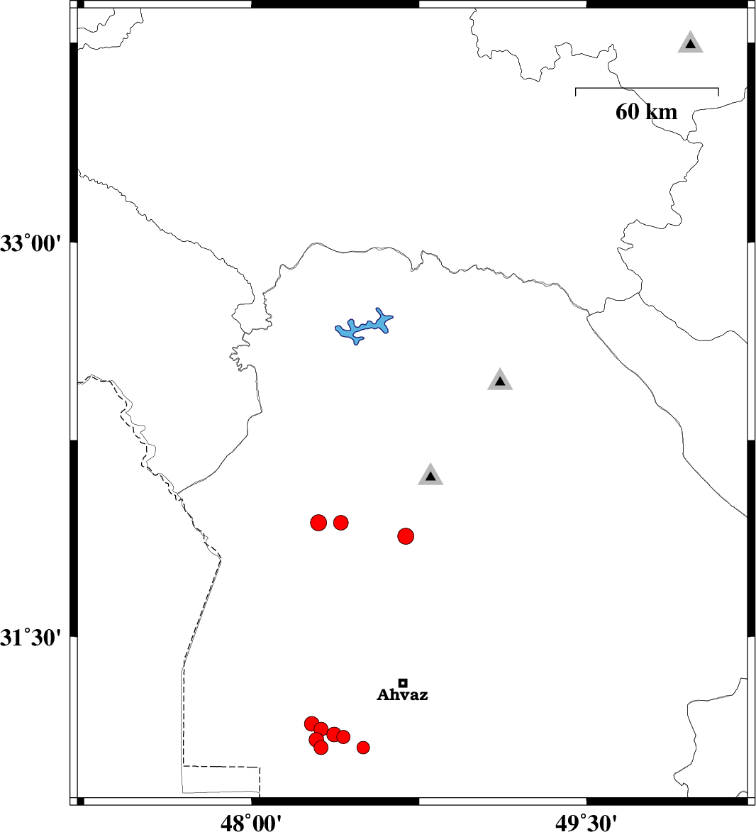 2009/05/04 01:59:14.4 06:29:14.4 32.3848.7230 ML2.8 30 km East of Dezful, Khoozestan Province