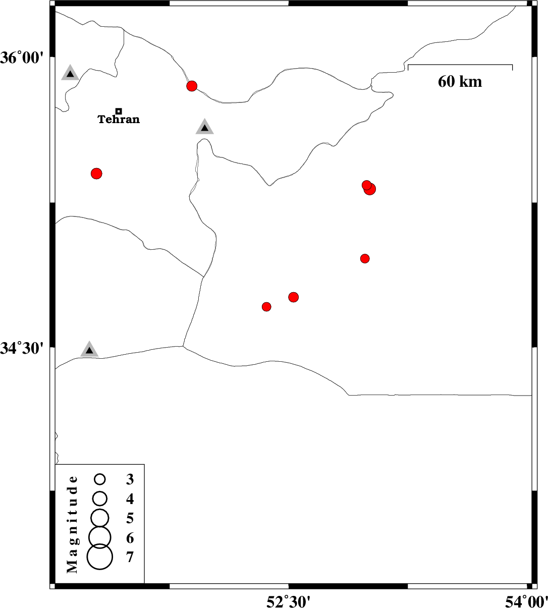 2009/05/06 14:58:05.6 19:28:05.6 34.7652.5328 ML2.8 54 km South-East of Garmsar, Semnan Province