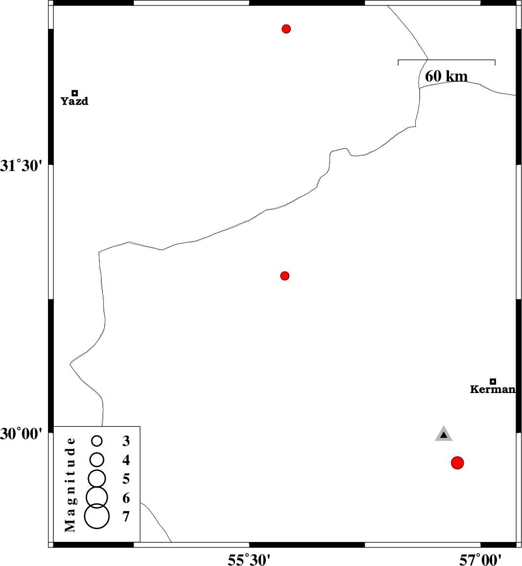 2009/05/04 | 01:10:47.0 | 05:40:47.0 | 29.83 | 56.85 | 9 | ML3.6 | 28 km East of Bardsir, Kerman Province | ||