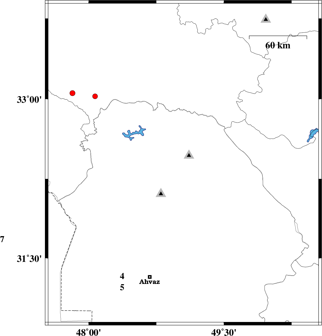 2009/05/05 | 09:20:25.5 | 13:50:25.5 | 32.42 | 48.8 | 18 | ML2.7 | 28 km West of Lali, Khoozestan Province |