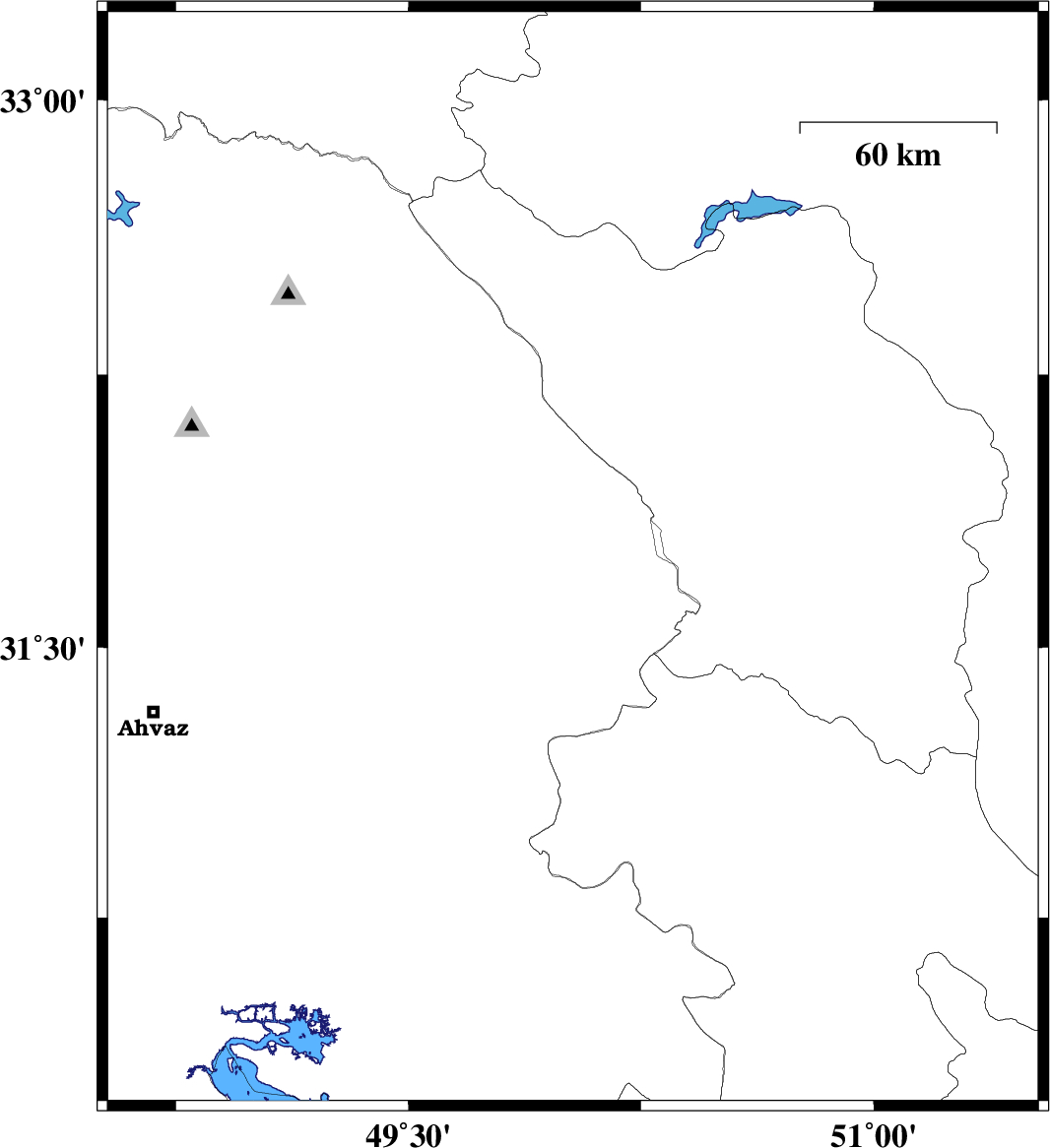 2009/05/04 | 01:15:16.1 | 05:45:16.1 | 32.45 | 48.72 | 15 | ML2.8 | 30 km East of Dezful, Khoozestan Province | ||