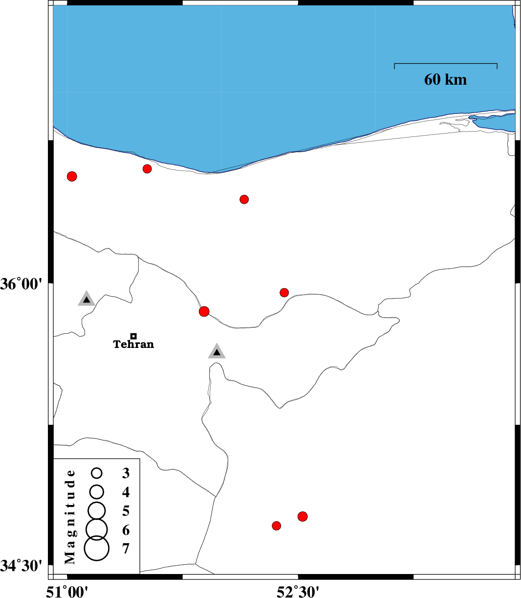 2009/04/28 | 23:18:11.4 | 03:48:11.4 | 35.85 | 51.89 | 15 | ML3 | 22 km North-West of Damavand, Tehran Province | ||