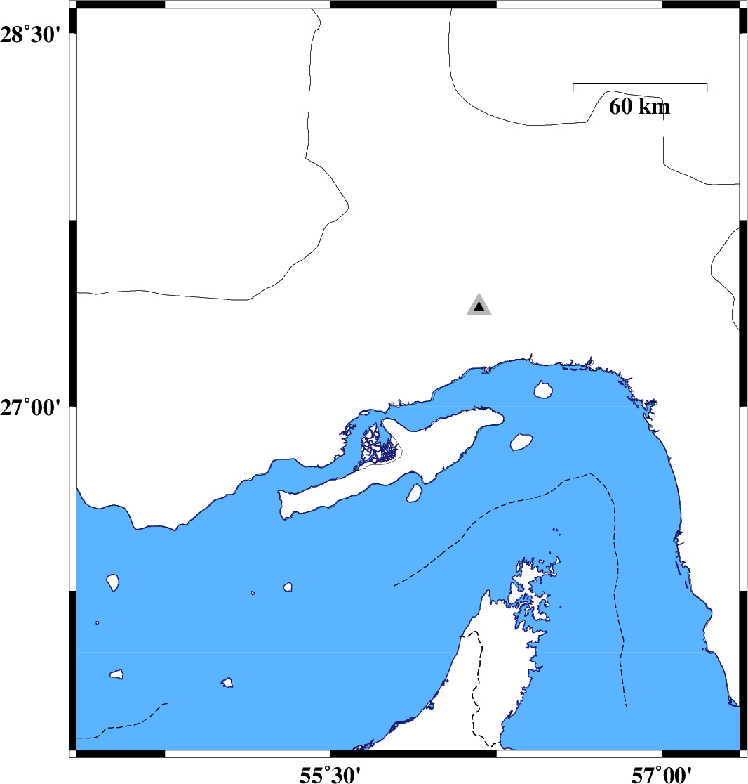 2009/05/07 | 22:44:04.0 | 03:14:04.0 | 25.73 | 56.98 | 14 | ML4.9 | Oman Sea, 80 km West of Jask | ||