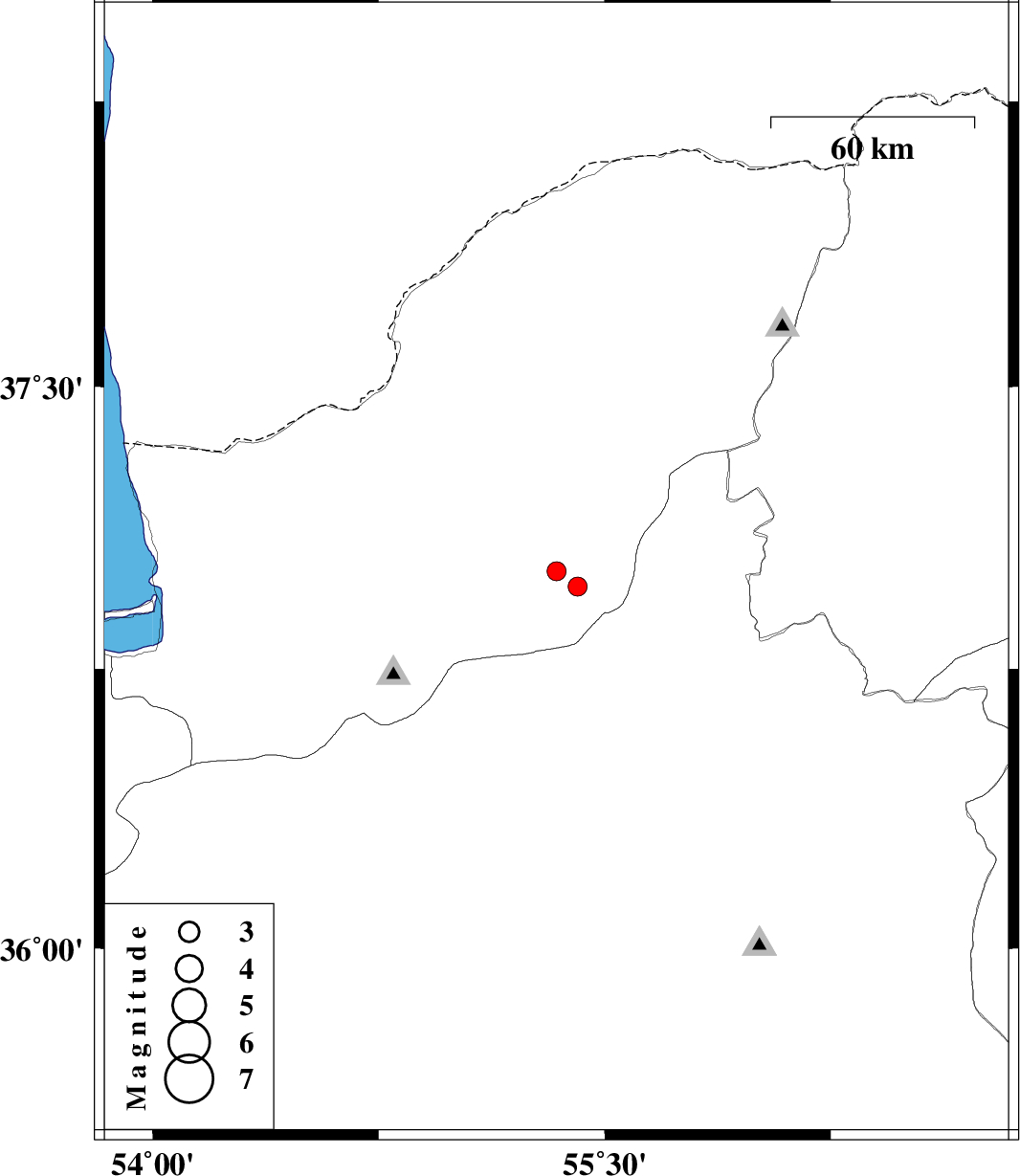 2009/05/23 | 08:19:57.9 | 12:49:57.9 | 36.97 | 55.41 | 9 | ML2.8 | 23 km East of Ramian, Golestan Province |