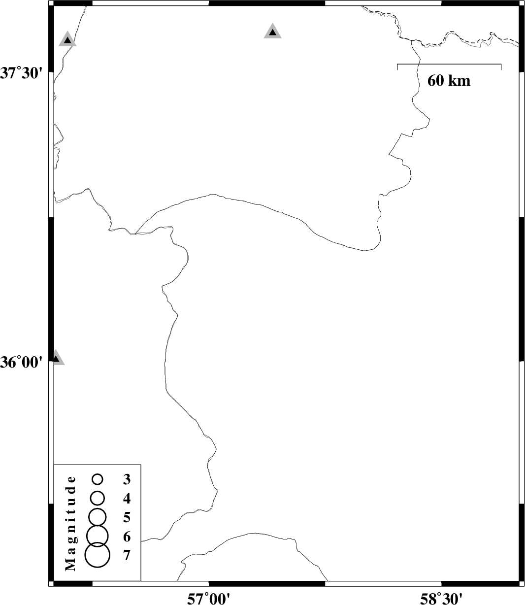 2009/06/10 | 18:59:52.7 | 23:29:52.7 | 36.34 | 57.5 | 15 | ML2.7 | 21 km North-West of Sabzevar, Khorasan(center) Province |
