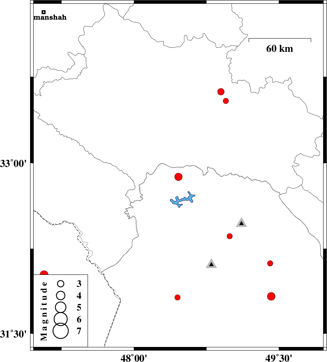2009/06/18 | 12:52:42.2 | 17:22:42.2 | 32.02 | 47.07 | 42 | ML3.8 | 76 km South-West of Dehloran, Ilam Province | ||