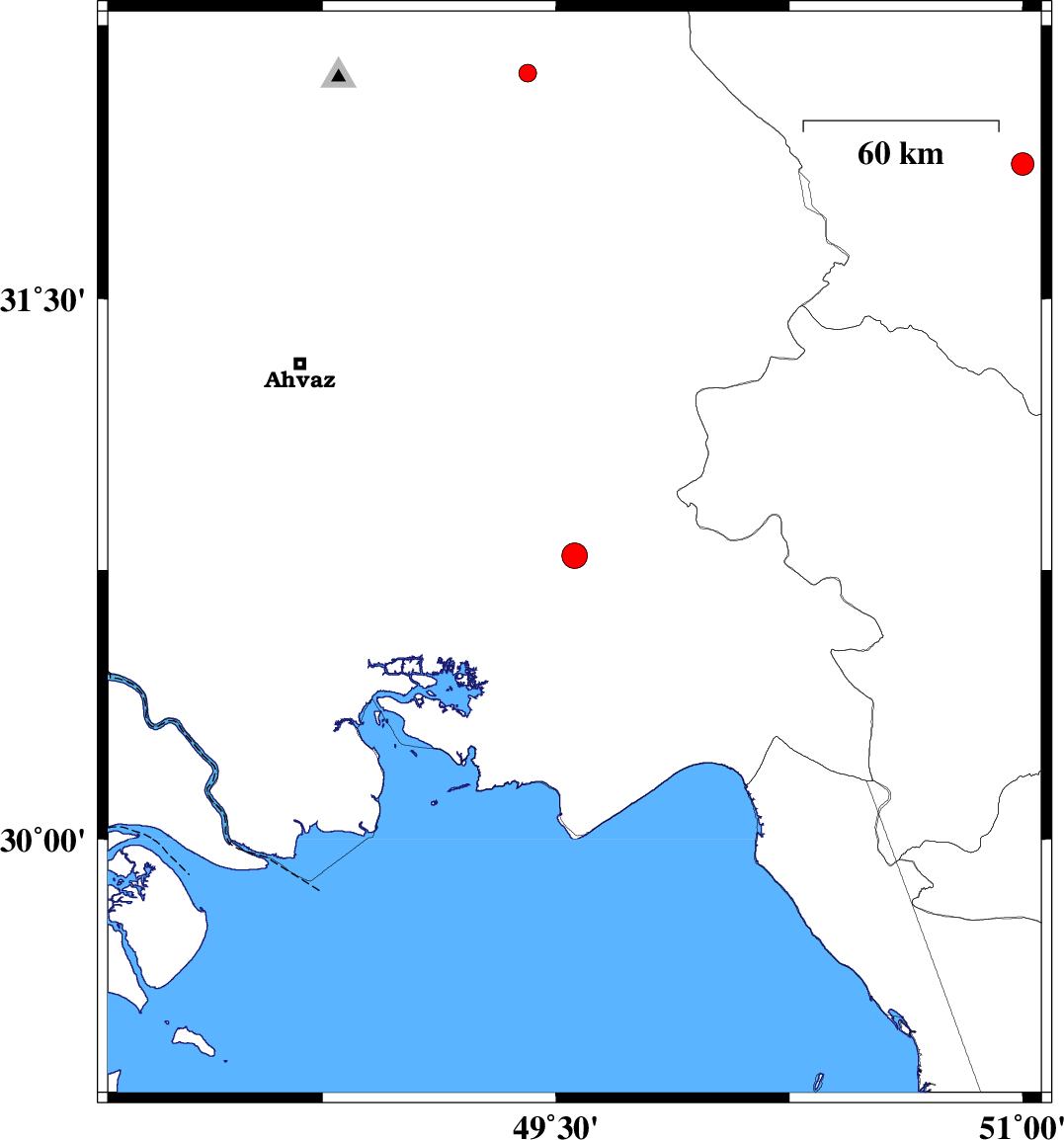 2009/06/20 | 02:28:54.0 | 06:58:54.0 | 30.79 | 49.56 | 37 | ML3.6 | 14 km West of Omidiyeh, Khoozestan Province | ||
