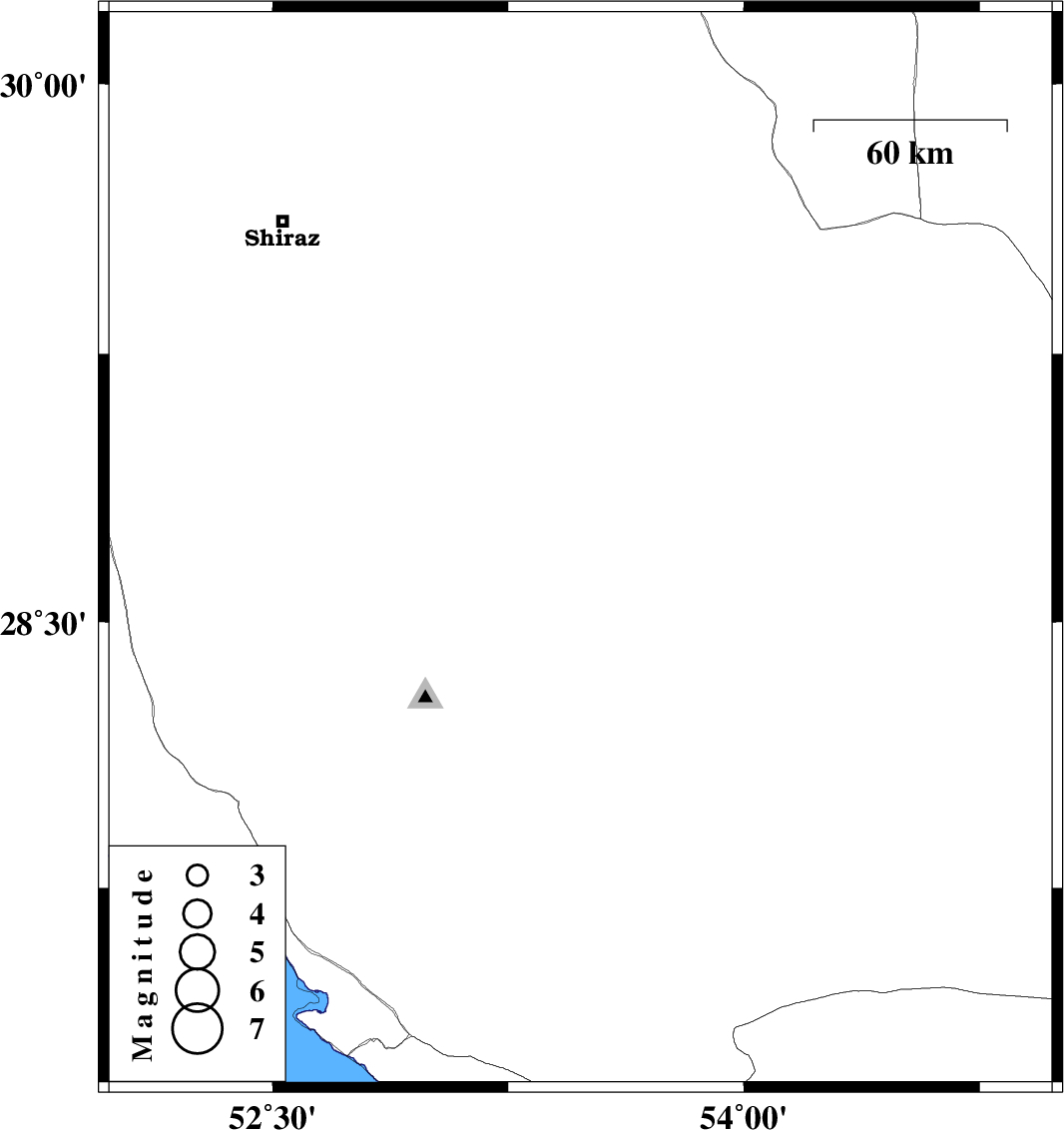 2009/06/22 | 08:49:40.6 | 13:19:40.6 | 28.7 | 53.48 | 14 | ML3.1 | 23 km North of Jahrom, Fars Province |