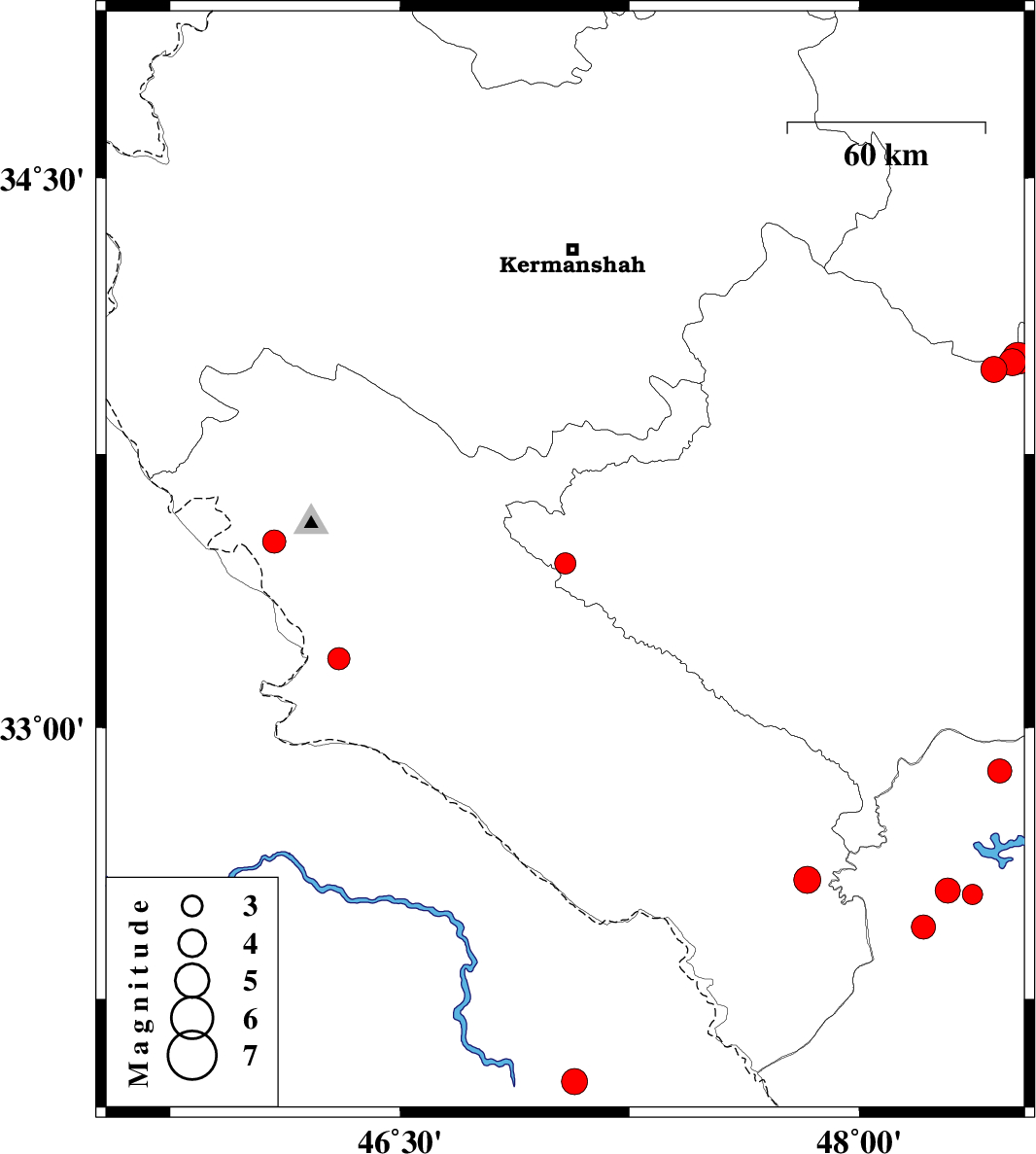 2009/06/24 | 14:39:07.6 | 19:09:07.6 | 33.45 | 47.04 | 14 | ML3.1 | 43 km North-West of Darreh Shahr, Ilam Province | ||