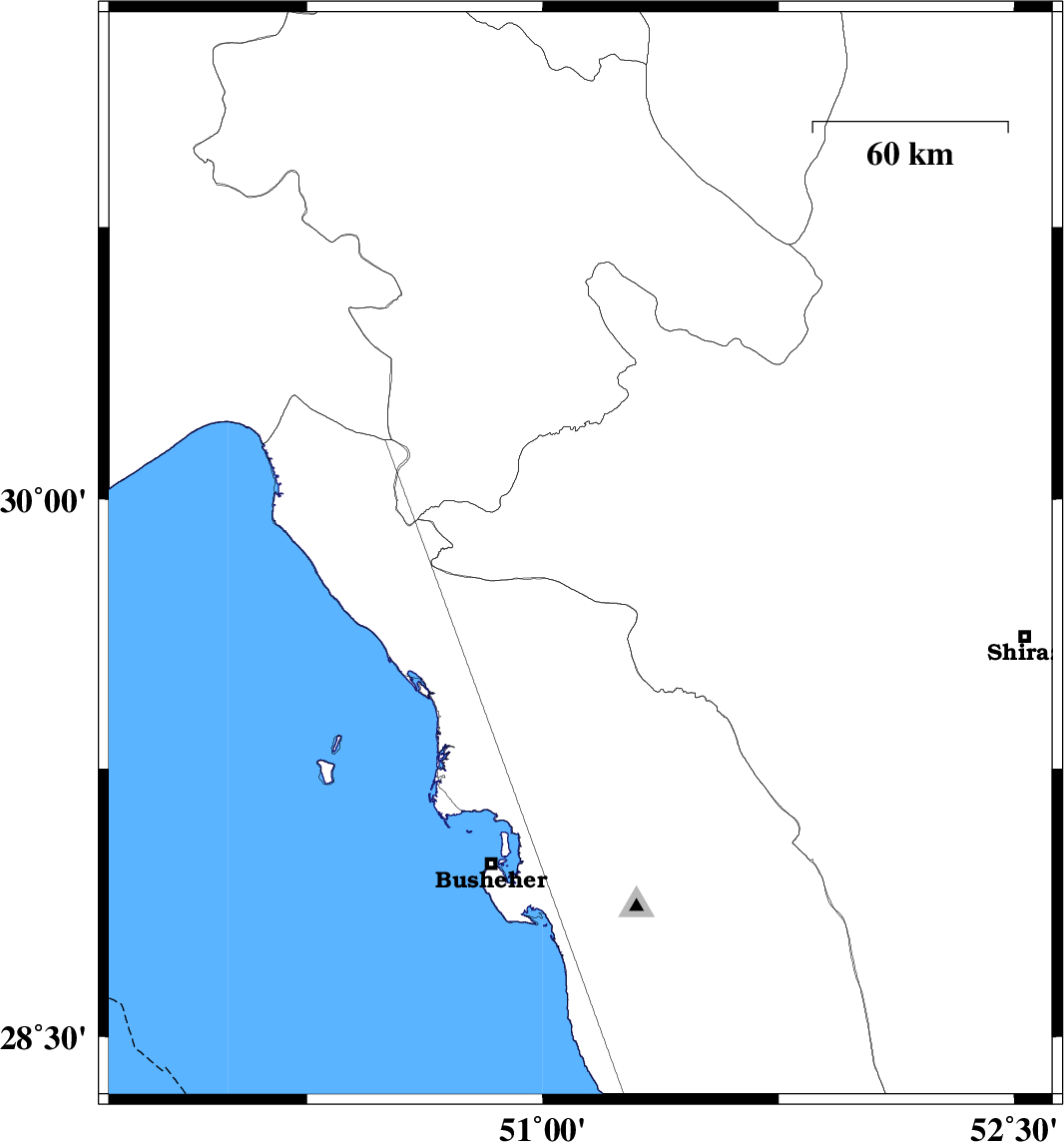 2010/01/08 | 02:28:18.5 | 05:58:18.5 | 29.4 | 52.61 | 46 | ML3 | 25 km South of Shiraz, Fars Province | ||