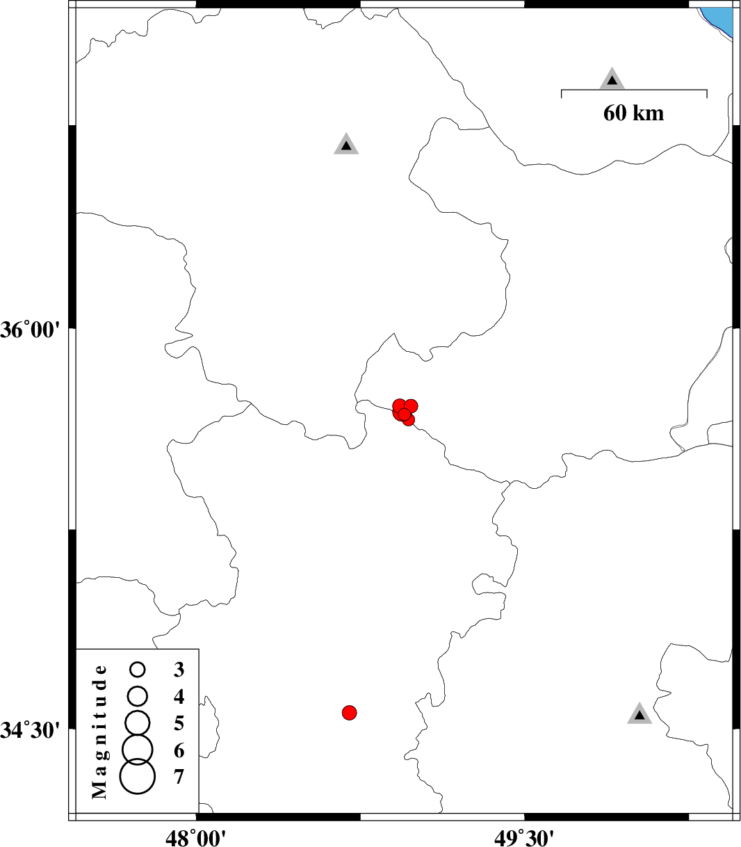 2010/01/10 | 06:52:23.5 | 10:22:23.5 | 35.69 | 48.94 | 15 | ML4 | 34 km North of Razan, Hamedan Province | ||